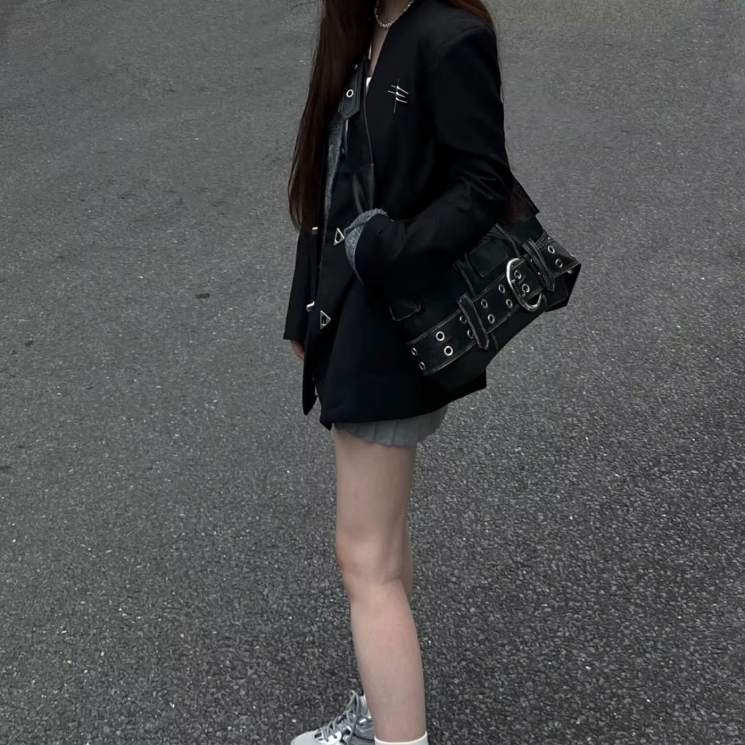 Washed in deep charcoal and frayed with intention, the Ashen Denim Shoulder Tote carries the soul of vintage rebellion with a sharp, modern edge.
